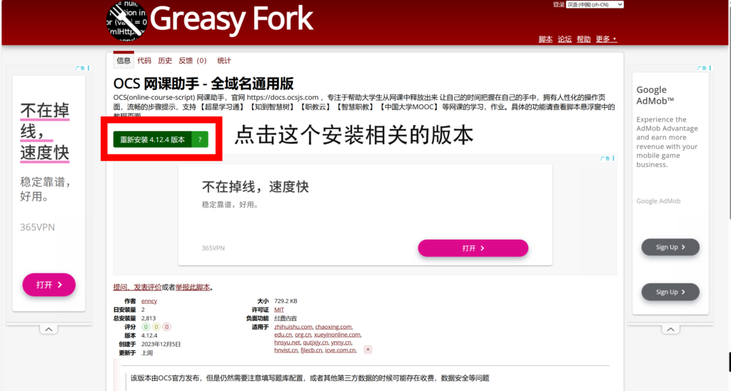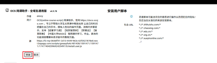 上述任务完成后会弹到ocs网课网课助手安装的页面,点击安装即可。