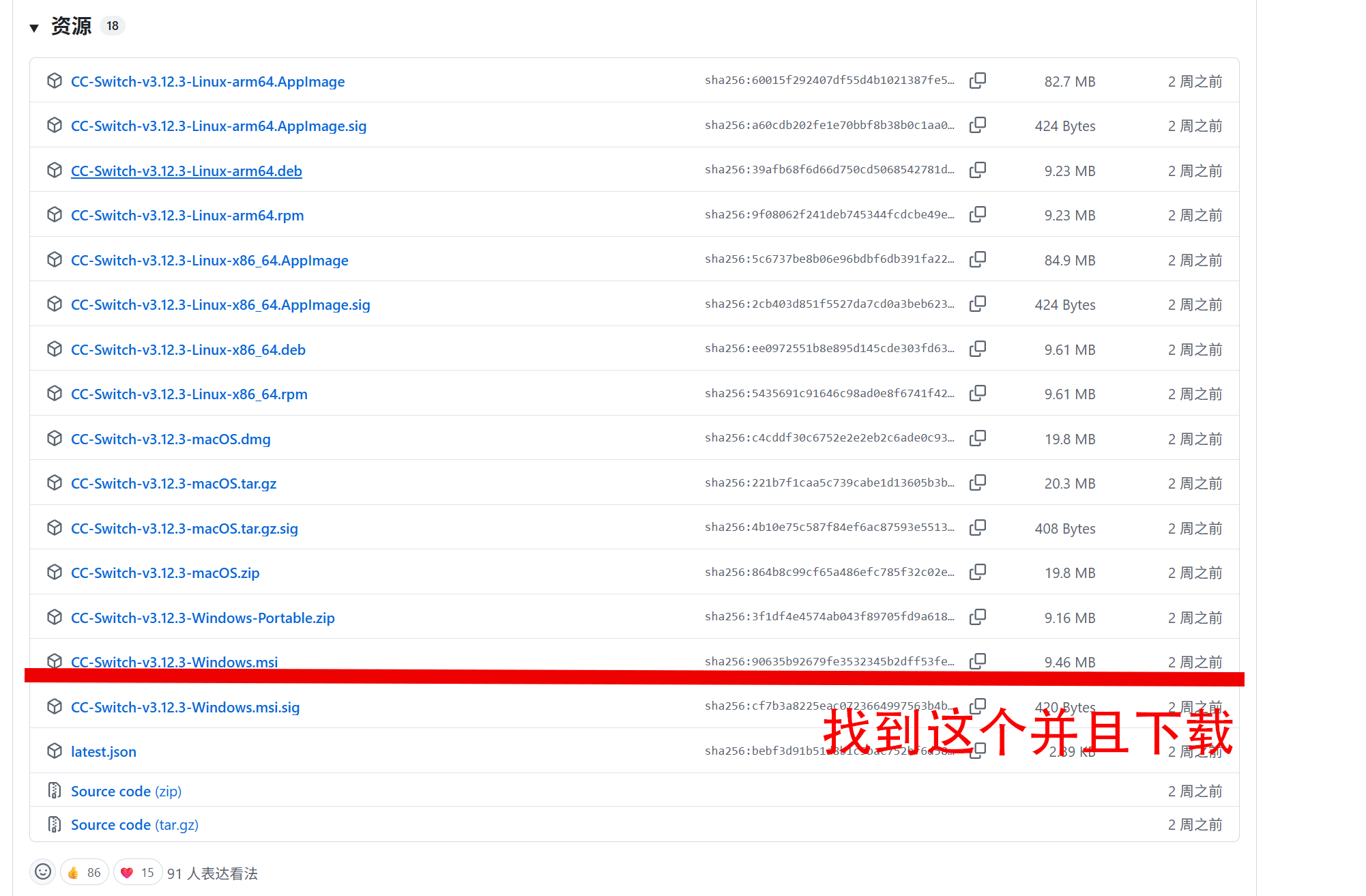 找到CC-Switch-v3.xx-Windows.msi并且下载文件