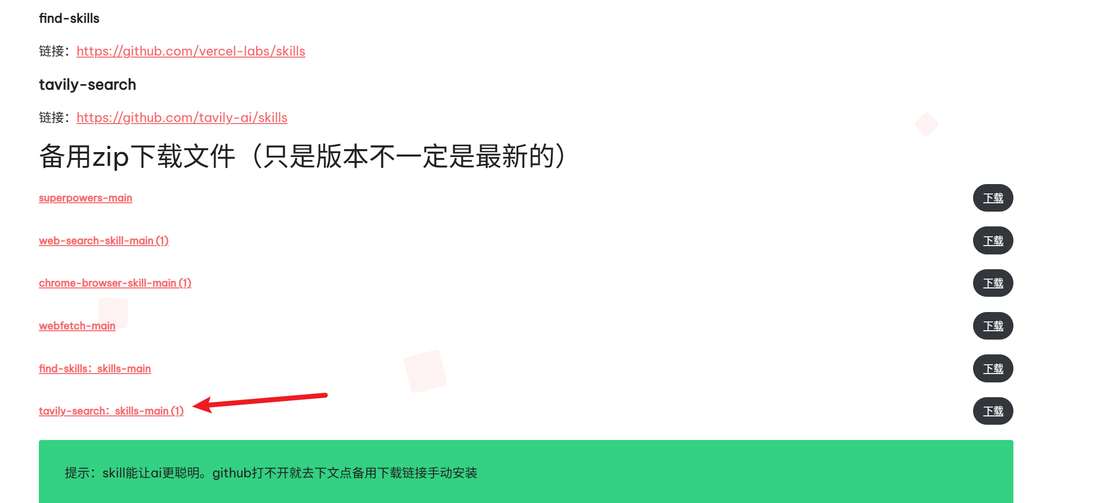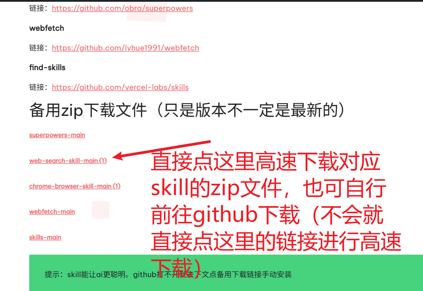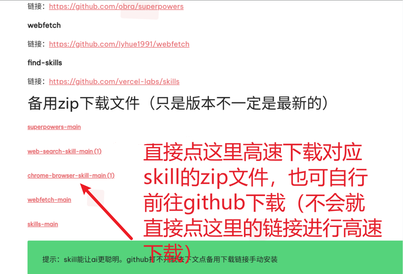 提示:skill能让ai更聪明。github打不开就去下文点备用下载链接手动安装